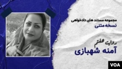 آمنه شهبازی ۳۶ ساله و مادر ۳ فرزند، دو پسر و یک دختر بود. در روز ۲۶ آبان ۱۳۹۸ در مارلیک کرج، به قصد گرفتن دارو برای دخترش " باران " از خانه خارج شد. در راه بازگشت به خانه با درگیری بین معترضان به گرانی بنزین و نیروهای امنیتی مواجه شد. آمنه سعی داشت به جوانی که یکی از پاهایش تیر خورده و زخمی بود کمک کند، در حین بستن زخم پای جوان، تک تیراندازان نیروهای امنیتی از بالای پشت بام به گردنش از پشت شلیک کردند و فرزندانش را بی مادر کردند.