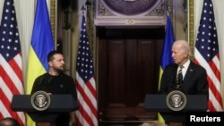 جو بایدن، رئیسجمهوری آمریکا پیشتر قول داده بود که حمایت آمریکا از اوکراین «تا هر زمانی که طول بکشد» ادامه خواهد یافت اما روز سهشنبه، در کنفرانس خبری مشترک با ولودیمیر زلنسکی، گفت که ایالات متحده «تا زمانی که بتواند، به تامین سلاحها و تجهیزات حیاتی اوکراین ادامه خواهد داد.»