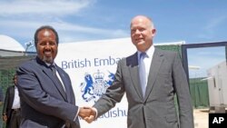 ویلیام هیگ، وزیر امور خارجه بریتانیا، روز پنجشنبه در موگادیشو گفت بازگشایی سفارت تعهد بریتانیا را به همکاری با دولت سومالی درحالی که برای بازسازی کشور تلاش می کند نشان می دهد.