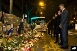 باراک اوباما، رئیس جمهوری آمریکا یکشنبه شب، در بدو ورود به پاریس در مقابل یکی از مکان هایی که دهها نفر در حملات تروریستی سه هفته پیش پاریس در آن کشته شدند، حاضر شد و به قربانیان ادای احترام کرد.