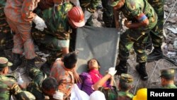 یکی از کسانی که از زیر آوار بیرون آورده شد، زن جوانی بود که روز جمعه پس از هفده روز دوام آوردن زیر آوار ساختمان فروریخته مجتمع تولید پوشاک در نزدیکی داکا پایتخت بنگلادش، نجات یافت.