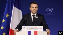 ماکرون در دیدار با رهبران جوامع یهودی فرانسه گفت این کشور، تمام اروپا و عموم دموکراسیها در غرب شاهد افزایش بیسابقه یهودیستیزی هستند.