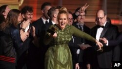 ادل، خواننده بریتانیایی که بزرگترین برنده شب بود مراسم را با اجرای ترانه مشهوری «سلام» آغاز کرد و در بخشی از برنامه نیز با خواندن ترانه Fastlove از جورج مایکل، ستاره فقید موسیقی پاپ از او تجلیل کرد اما این اجرا با مشکلاتی همراه شد و ادل پس از اینکه کمی زیر لب بد و بیراه گفت اجرا را متوقف کرد.