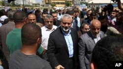 بنا به گزارش خبرگزاری رویترز، اسماعیل هنیه رهبر جدید حماس روز دوشنبه ۱۸ اردیبهشت ماه به نوار غزه رفت تا با حضور در جمعی از فلسطینی ها نسبت به فلسطینیان در حبس در اسرائیل که ۲۲ روز است دست به اعتصاب غذا زده اند ابراز همبستگی کند.