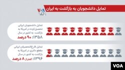 بر اساس همین آمار، تمایل دانشجویان ایرانی تحصیل کرده در آمریکا به بازگشت به ایران از ۹۰ درصد در سال ۱۳۵۸ به کمتر از ۱۰ درصد در سالهای اخیر کاهش یافته است.