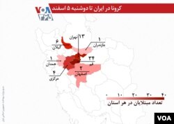 ✅ اینفوگرافیک |تعداد مبتلایان به کرونا در هر استان تا ظهر دوشنبه ۵ اسفند ۹۸
