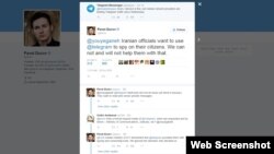 پاول دورف روز سه‌شنبه ۲۰ اکتبر در توئیتر خود نوشت که مقامات وزارت ارتباطات و فناوری اطلاعات ایران از تلگرام خواسته‌اند تا جاسوسی از شهروندان با استفاده از این پیام رسان ممکن شود، اما تلگرام با این درخواست مخالفت کرده و اعلام کرده که کمکی در این زمینه به آنها نخواهد کرد.