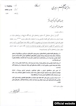نامه دفتر رهبر جمهوری اسلامی که از سوی امضای محمد محمدی گلپایگانی، رئیس دفتر رهبری امضا شده در پاسخ به گزارشی نوشته شده که "حاوی برنامههای ملی یازده گانه دولت در جهت اجرای سیاستهای کلی اقتصاد مقاومتی" بوده است.
