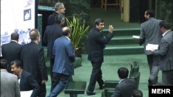 وی گفت: «امروز نيز فروزنده معاون پارلمانی رييس جمهور (ساعت) هفت صبح پيغام فوری را به من دادند که استيضاح مشکل ايجاد می‌کند. ممکن است رييس جمهور حرف هايی بزند، هم بنده حضور داشتم و هم آقای مظفر. صحبت کرديم که رييس جمهور بپذيرند و اين جابجايی انجام شود. اما در ادامه نکته‌ای را گفت که اگر اين مساله حل نشود آقای احمدی‌نژاد نواری را از بستگان من پخش می‌کند. در واقع وی مرا تهديد کرده است و بنده نيز اعلام کردم که نمی‌دانم موضوع نوار چيست اما هر کدام از بستگان من باشد فرقی نمی‌کند اگر می‌خواهند حرفی بزنند بگويند. بنده نيز اطلاعات زيادی دارم اما لازم نمی‌دانم فضا را متشنج کنم.»