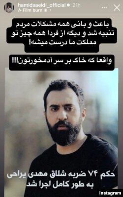حمید سعیدی، نوازنده و آهنگساز، با انتشار استوری در اینستاگرام، تصویری از مهدی یراحی را به اشتراک گذاشت و نوشت: «باعث و بانی همه مشکلات مردم تنبیه شد و دیگه از فردا همه چیز تو مملکت ما درست میشه، واقعاً که خاک بر سر آدمخوارتون.»