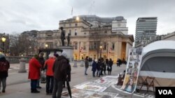 جمعی از فعالان مخالف جمهوری اسلامی در بریتانیا در حمایت از مجاهد کورکور و رضا رسایی، دو زندانی سیاسی محکوم به اعدام، تحصنی یک هفتهای را در میدان ترافالگار لندن آغاز کردهاند. این تحصن از روز جمعه ۱۵ دی آغاز شده است.