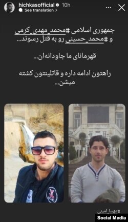 سروش لشکری مشهور به «هیچکس» رپ‌خوان ایرانی در واکنش به اعدام دو معترض ایرانی دیگر در استوری حساب کاربری خود در اینستاگرم نوشت «جمهوری اسلامی محمد مهدی کرمی و محمد حسینی رو به قتل رسوند.» او در ادامه افزود «قهرمانای ما جاودانه‌ان…راهتون ادامه داره و قاتلینتون کشته میشن...»