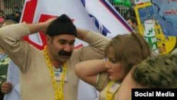 اما ترتیب دهندگان مراسم حکومتی امسال به همین مقدار قناعت نکرده و چند مرد گریم شده در لباسی شبیه به ملوانان آمریکایی را با زنجیر پلاستیکی در گردن در مسیر راهپیمایی گرداندند. برای ایفای نقش ملوان زن آمریکایی نیز یک مرد را به شکل زن گریم کرده بودند.