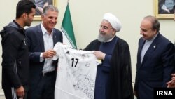 در این دیدار مسعود شجاعی کاپیتان تیم ملی فوتبال ایران و کارلوس کی روش، سرمربی تیم یک پیراهن امضا شده تیم ملی را به رئیس جمهوری ایران هدیه دادند. مسعود شجاعی نیز به نمایندگی از بازیکنان سخنان کوتاهی داشت.