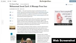 محمدجواد ظریف در این یادداشت، که روز دوشنبه بیستم آوریل ۲۰۱۵ (۳۱ فروردین ماه ۱۳۹۴) با عنوان «پیامی از جانب ایران» در بخش نظرات این روزنامه منتشر شده است، به تفاهم هستهای تهران و قدرتهای جهانی که اواسط فروردین ماه بدست آمد، اشاره کرده و میگوید در شهر لوزان سوئیس به پيشرفتهای مهمی دست يافتيم.