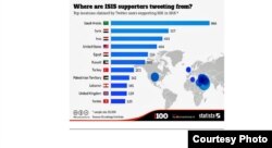 موسسه استاتیستا، توییت هایی را که در حمایت از گروه داعش از کشورهای مختلف جهان نوشته و ارسال شده را جمع آوری و مطالعه کرده و اینطور نتیجه گرفته است که بیشترین شمار توییت های مدافع داعش از خاک عربستان سعودی در این شبکه اجتماعی فراگیر به اشتراک گذاشته شده است.
