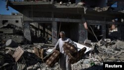 ساکنان نوار غزه و شاهدان به خبرگزاری رویترز گفتند که بمباران غزه توسط نیروهای اسرائيلی و پرتاب راکت توسط حماس، روز یکشنبه آرام تر شد.