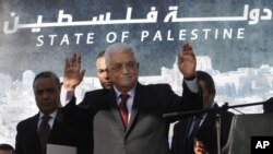 او در جمع حدود ۵۰۰۰ نفر از فلسطینی های شاد گفت: «بله، حالا ما صاحب یک کشور هستیم.» او در عین حال با اشاره تلویحی به شهرک سازی های اخیر اسرائیل، درباره «مجازات های خلاقانه» این کشور هشدار داد.
