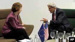 جان کری وزیر امور خارجه آمریکا روز یکشنبه (٢١ مهر) در لندن با کاترین اشتون، مسئول سیاست خارجی اتحادیه اروپا دیدار و گفتگو کرد.