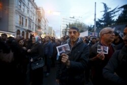 تظاهرکنندگان در استانبول عکس طاهر الچی را در دست دارند.