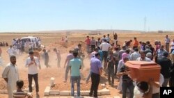 همسر و دو پسر یک پناهجوی سوری که در سفری ناکام به قصد مهاجرت به اروپا جان خود را در آبهای بین ترکیه و یونان از دست دادند، روز جمعه در زادگاهشان در شهر کوبانی سوریه به خاک سپرده شد.