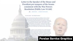 جو بایدن در این نامه نوشته است: «گروههای شبهنظامی وابسته به سپاه پاسداران مجموعهای از حملات را علیه پرسنل و تأسیسات ایالات متحده در عراق و سوریه انجام دادهاند. در ۲۳ مارس ۲۰۲۳، یک حمله پهپادی به شکل غمانگیزی منجر به کشته شدن یکی از پیمانکاران آمریکایی ارتش ایالات متحده و شش نفر دیگر از جمله پنج سرباز ایالات متحده زخمی شد. حمله ۲۳ مارس در پی سلسله حملات قبلی علیه نیروهای ایالات متحده در سوریه صورت گرفت. این حملات جان پرسنل ایالات متحده و ائتلاف را در معرض تهدید مداوم قرار داده است.»