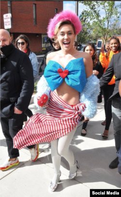 مایلی سایرس که میان جوانان از محبوبیت زیادی برخوردار است با دیدار از دانشگاه «جورج میسون» در ویرجینیا سعی کرد دانشجویان ساکن این ایالت را قانع کند تا به هیلاری کلینتون رأی بدهند. او با لباسی که به رنگ پرچم آمریکا بود، پشت در خوابگاه این دانشجویان آنها را سورپرایز کرد.
