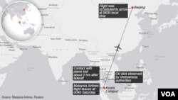 از سرنوشت ۲۳۹ سرنشین هواپیمای مسافربری خطوط هوایی مالزی که سحرگاه شنبه هشتم مارس یک ساعت پس از برخاستن از زمین از صفحه رادار فرودگاه های مسیر پرواز ناپدید شد، هنوز خبری در دست نیست. جستجو برای یافتن هواپیما در سواحل مالزی و ویتنام – که احتمال می رود هواپیما در آن حوالی سقوط کرده باشد، همچنان ادامه دارد.