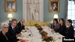 آنتونی بلینکن، وزیر امور خارجه آمریکا، نیز در دیدار با خانم بنیادی و چهار زن کنشگر ایرانی دیگر با اشاره به دهها سال اعتراض مردم ایران علیه جمهوری اسلامی، گفت: «با وجود تلاشهای جمهوری اسلامی برای جلوگیری از برگزاری تجمعات، آزادی بیان، و ارتباط آزادانه ایرانیان با یکدیگر، ایالات متحده به حمایت از معترضان ادامه خواهد داد.»