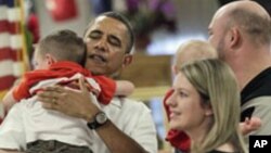 آقای اوباما گفت که با اتمام یافتن جنگ در عراق و انجام موفقیت آمیز انتقال قدرت در افغانستان شماری از زنان و مردان ارتشی به زودی از دل خطر به خانه باز خواهند گشت.