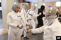 ابتهاج محمد اولین زن آمریکایی محجبه آمریکایی در مسابقات المپیک توانست ۱۵ بر ۱۳ حریف اوکراینی خود را شکست دهد و به دور بعدی صعود کند.