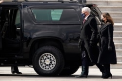 مایک پنس، معاون پیشین ریاست جمهوری آمریکا و همسرش پس از مراسم تحلیف جو بایدن، توسط کامالا هریس معاون رئيس جمهوری جدید آمریکا و همسرش داگ امهاف بدرقه شدند. آنها به خانه خود در ایالت ایندیانا بازمیگردند. آقای پنس قبل از معاون رئيس جمهوری سالها عضو کنگره آمریکا بود.