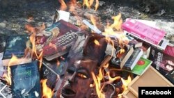 گروه «اس ام اس از بنیاد بهشت» تصاویری را از سوزاندن کتابهایی که از دید اعضای این گروه «توهین به مقدسات» است بر صفحه فیس بوک خود منتشر کرد و نوشت: «ما از کلام خدا اطاعت می کنیم.»