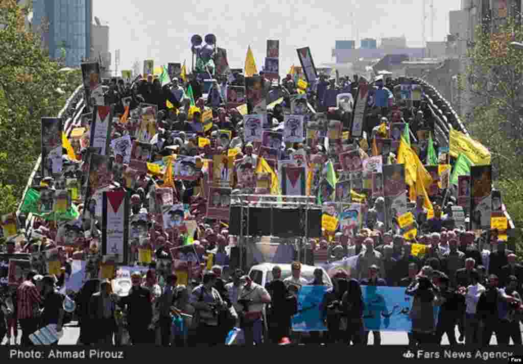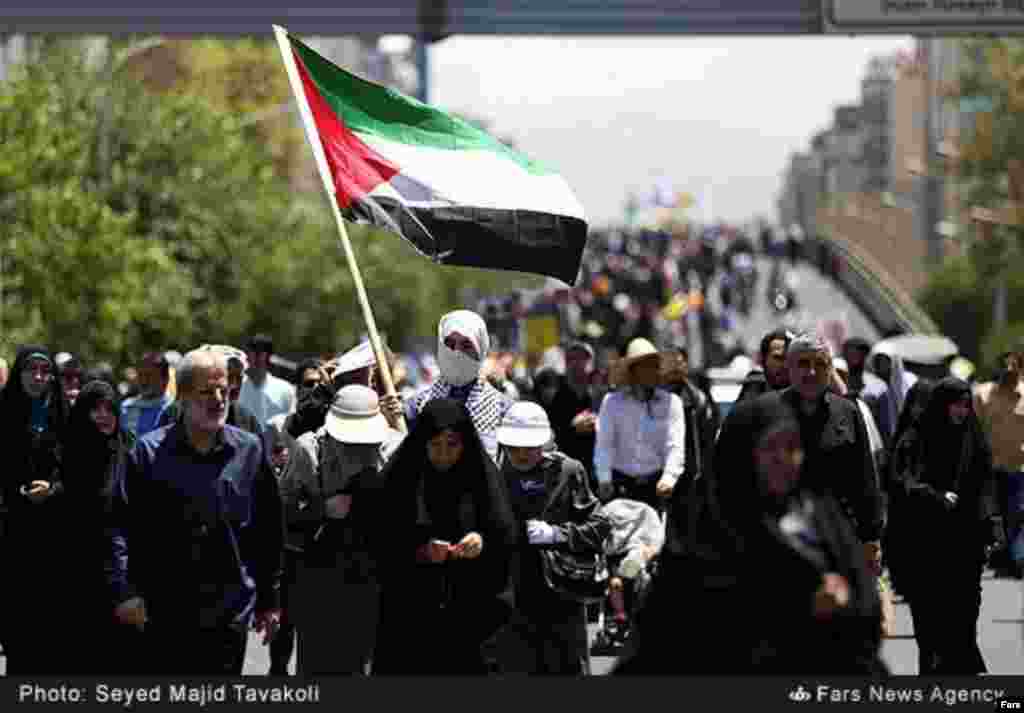 راهپیمایی قدس امسال همزمان در شهرهای مختلف ایران برگزار شد. به گزارش خبرگزاری ایسنا این تظاهرات با شعار «روز جهانی قدس، تجلی آرمان فلسطین، فریاد وحدت امت اسلام علیه جاهلیت مدرن و کودک کشی از غزه تا یمن» برگزار شد. به گزارش خبرگزاری ایسنا، در تظاهرات تهران، شماری از چهره های ارشد سیاسی شرکت کردند. حسن روحانی، رئیس جمهوری اسلامی گفت: «ایران با وحدت، انسجام، مقاومت، ایستادگی، جهاد و فداکاری، همه مسلمانان از جمله ملت فلسطین به اهداف بلندشان می‌رسند.»
