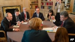 ولادیمیر پوتین رئیس جمهوری روسیه و پترو پوروشنکوو رئیس جمهوری اوکراین، در کوشش دیگری برای حل بحران اوکراین، پس از نیمروز جمعه برای دومین بار با آنگلا مرکل صدراعظم آلمان و فرانسوا اولاند رئیس جمهوری فرانسه ملاقات کردند.
