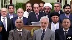 اوایل هفته جاری، علی شمخانی، دبیر شورایعالی امنیت ملی ایران، بنمایندگی از سوی دولت متبوع خود اعلام کرد که ایران از روند قانونی برای گزینش جانشین نوری المالکی، نخست وزیر، حمایت می کند. همزمان گروه شبه نظامی اصحاب الحق که از پشتیبانی ایران بر خوردارست، موضعی شبیه ایران را اعلام کرد.