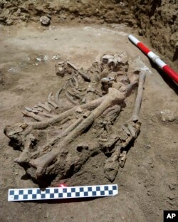 ملونی گفت با این که بیشتر اسکلت سالم مانده بود، ولی پای چپ آن از ناحیه ساق به پایین در قبر نبود.