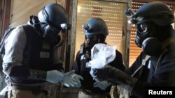 -آزمایشگاههایی که برای سازمان منع تسلحیات شیمیایی کار میکنند، نمونههایی را که سازمان ملل در ۲۱ اوت ۲۰۱۳ از غوطه شرقی در نزدیکی دمشق جمعآوری کرده بود را با نمونههایی که دمشق در سال ۲۰۱۴ برای انهدام تحویل داده است مقایسه کرد.