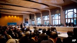 به جای ملاقات و گفتگوی رو در رو، نمایندگان دولت و شورشیان در اتاق های جداگانه با اخضر ابراهیمی فرستاده ویژه سازمان ملل متحد و اتحادیه عرب گفت و گو کردند، و او نقطه نظر ها و مواضع هر کدام را با دیگری در میان گذارد.