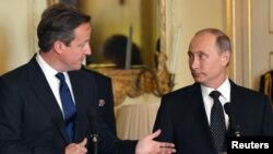 آقای پوتین که از فرودگاه لندن مستقیما بدیدار دیوید کامرون نخست وزیر بریتانیا رفت گفت غرب نباید شورشیانی را که «آدمخواری» کرده اند مسلح کند.