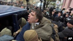 میخائیل ساکاشویلی رئیس جمهوری پیشین گرجستان در کی یف پایتخت اوکراین در حالیکه برای تحریک اندک حامیانش روی سقف خانه اش رفته بود، بازداشت شد.