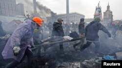 هزاران تن از مخالفان حکومت، در پی یک شبانروز درگیری های خونین با پلیس ضد شورش، همچنان در «میدان» در کیف مانده بودند.