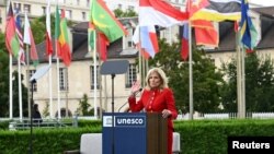 آدری آزولای، مدیر کل یونسکو، نیز در این مراسم گفت: « پرچم آمریکا را به جایی که متعلق به آنجاست، بازمیگردانیم.»