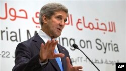 کری، که برای شرکت در اجلاس گروه بین المللی "دوستان سوریه" به دوحه رفته است، روز شنبه در مورد شزایط مذاکرات گفت راه پیش رو دشوارخواهد بود، و افزود "البته اگرراهی درپیش باشد."