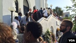 بازدیدکنندگان بسیاری نیز از ایالت های کالیفرنیا و دیگر ایالت های دور برای همبستگی با قربانیان کشتار روز چهارشنبه گذشته، در این کلیسا حاضر شدند.