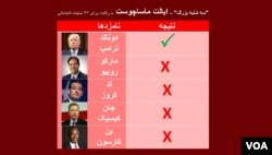 * در حزب جمهوریخواه دونالد ترامپ، تد کروز، مارک روبیو، بن کارسن و جان کیسیک با هم رقابت دارند.