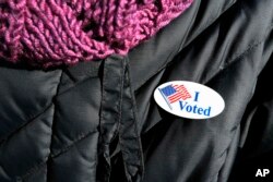 یک زن در ایالت ماساچوست، برچسب "من رای دادم" بر کاپشن خود زده است. در حالی در سه ایالت ویرجینیا، جورجیا و ورمونت رای گیری تمام شده و شمارش آرا شروع شده، در ماساچوست هنوز رای گیری ادامه دارد.