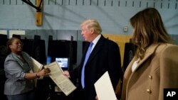 ترامپ رای خود را در یک مدرسه در منهتن داخل صندوق انداخت. پیشتر به فاکس نیوز گفت به خودش رای می دهد.