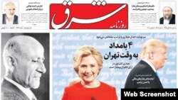روزنامه «اعتماد» تیتر گفت و گو با لطف الله میثمی درباره انتخابات آمریکا را در صفحه اول خود منتشر کرده و روزنامه دولتی «ایران» هم با تیتر «فینال رقابت تاجر و زن» در صفحه اول خود به موضوع انتخابات آمریکا پرداخته است.