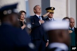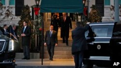 تصویری از خروج پرزیدنت ترامپ و بانوی اول از اقامتگاه جورج بوش و همسرش لارا در واشنگتن دی سی. رئیس جمهوری آمریکا و همسرش یک روز پیش از مراسم رسمی یادبود جورج بوش پدر با جورج دبلیو بوش و همسرش دیدار کردند.